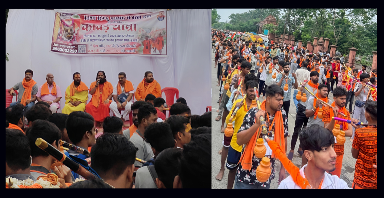 विश्व हिंदू परिषद-बजरंग दल द्वारा इंदौर में निकाली गई भव्य एवं ऐतिहासिक कांवड़ यात्रा।