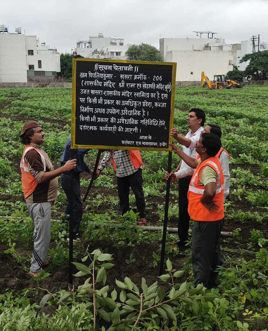 इंदौर। भगवान राम एवं खेड़ापति हनुमान मंदिर की करीब २५० करोड़ की जिस बहुमूल्य जमीन को बेच दिया गया था, प्रशासन ने फिर उसे कब्जे में ले लिया है। पहले कोर्ट के आदेश पर जमीन पुजारी के नाम हुई, फिर पुजारी ने इसे बेच दिया। अब प्रशासन ने नामांतरण को निरस्त कर जमीन पर कब्जा लेने की कार्रवाई शुरू कर दी है। जिनके नाम पर जमीन हुई थी वे मुस्लिम समुदाय से है।
