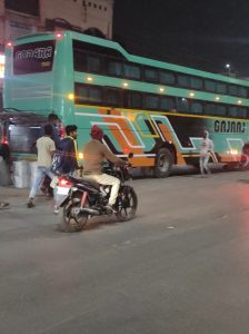 (सड़क पर ही बस,लोडिंग रिक्शे,ऑटो रिक्शों की पार्किंग).